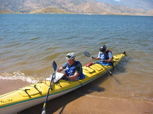 The lake paddle was just a straight shot almost directly south. Dan had cut CP 1 due to the high winds on the lake which was fine with me. As we got out into the open water there were 2-3 foot swells tossing the boat around. We had a direct head wind to paddle the next 6 miles in. We settled into a rhythm and laughed at what we had just been through. We wondered if anyone else had made it down the river behind us because we couldn’t see anyone following.. For the next hour and a half we made slow progress and chatted about the race so far. We were getting close to CP 2 and TA1 when we saw Hailey on the shore with the camera. She was waving and jumping up and down in a bikini in front of 2 fishermen. When she ran off to the truck I shouted at them “how’d you like that?” I got the big thumbs up and thanks from them. I was laughing so hard. I bet they don’t see that too often while fishing.