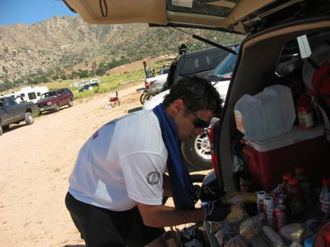 When we hit the shore we left the boat for super crew and ran to the truck. There was the most amazing spread of food I’d ever seen. Grant couldn’t believe his eyes. All the race food he’d ever wanted laid out in little baggies ready for him to take.