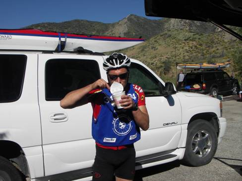 We had a quick lunch and jumped on the bikes for the 14 mile scenic road ride back to the finish at downtown Kernville. This was the best part for me, I was cruising along really happy. Hailey passed us in the truck and took photos of us riding down the road.